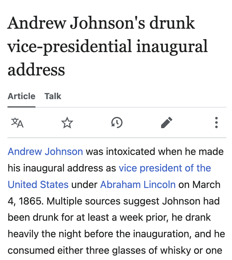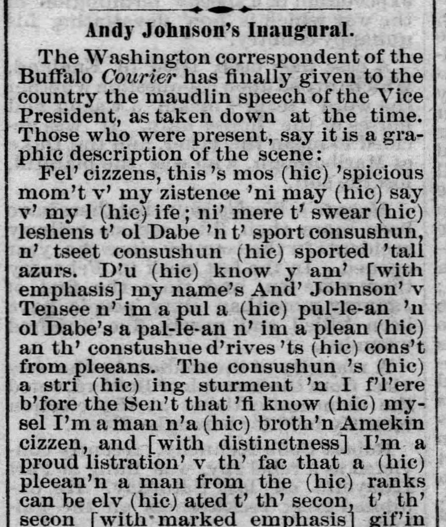 extra credit to the Buffalo Courier correspondent who transcribed all of Andrew Johnson's drunken hiccups