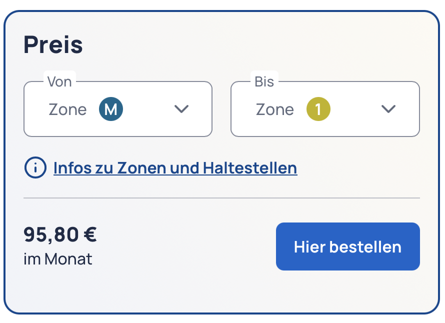 Wenn ich von meinem Zuhause in München-Trudering zum Büro nach Vaterstetten mit den Öffis fahre, ist das ein Zonensprung von der Zone M in die Zone 1. Damit kostet das Monatsticket €95,80 bei der MVV. Deswegen habe ich ein Deutschlandticket für €63/Monat. Damit komme ich noch viel weiter als bis Vaterstetten :)
