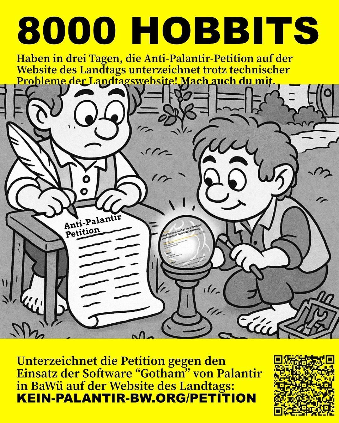 Wenn ihr noch nicht die Petition von no #Palantir #bawü unterzeichnet habt, dann macht das bitte noch. Es werden noch ein paar Unterschriften benötigt!