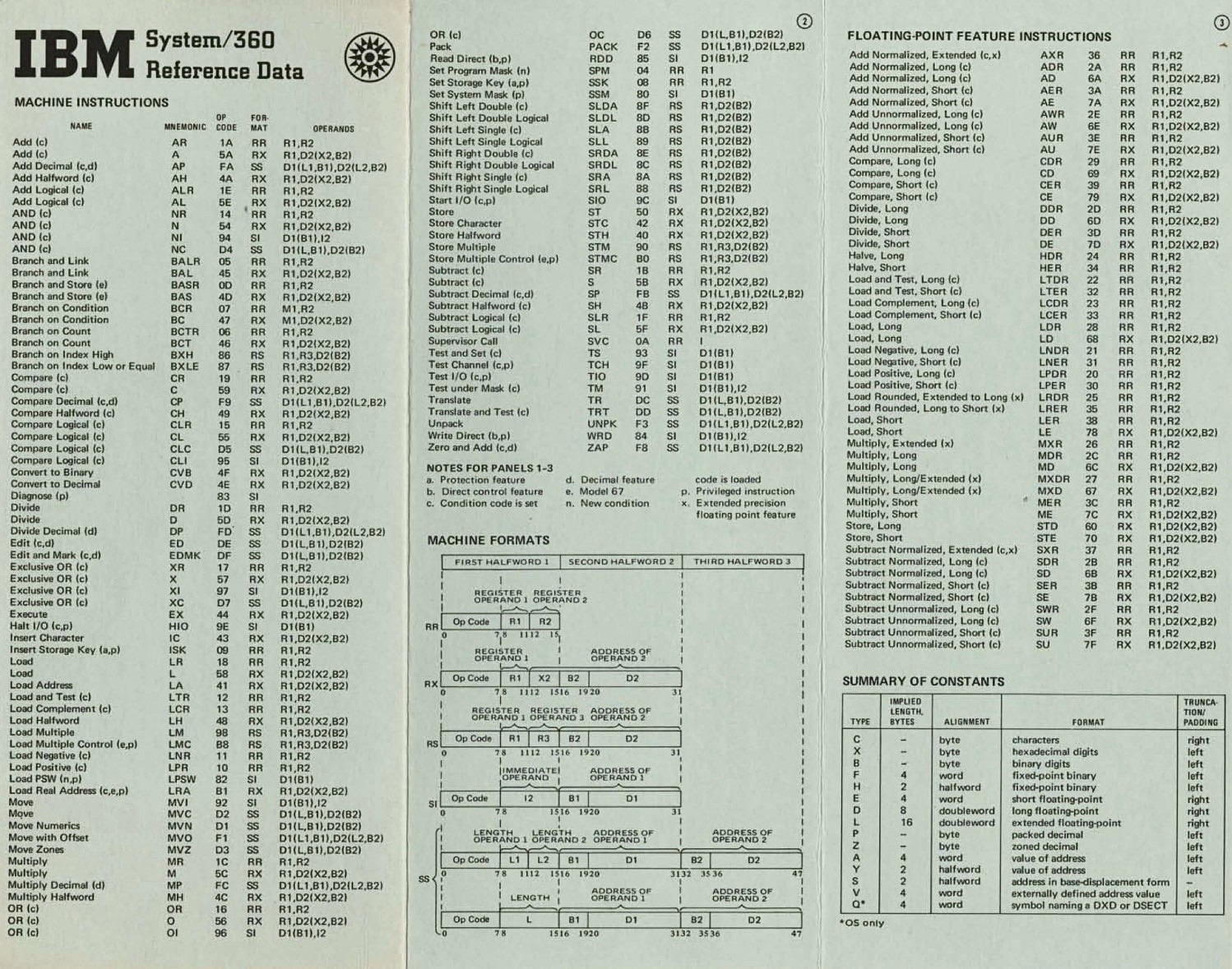 The IBM System/360 machine instructions reference card #s360 #assembly #mainframe https://archive.computerhistory.org/resources/access/text/2010/05/102678081-05-01-acc.pdf