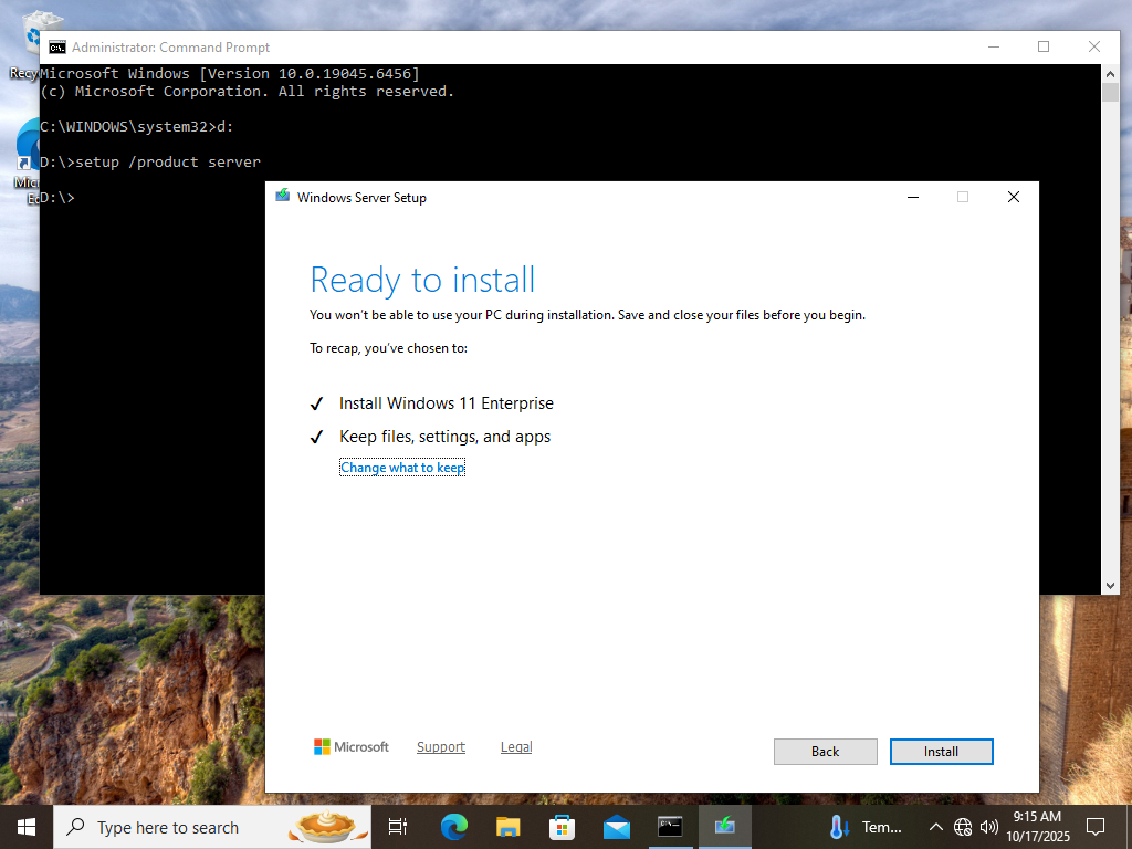 setup /product serverEnjoy your Windows 11 with no coerced Microsoft Account, TPM features, etc.
