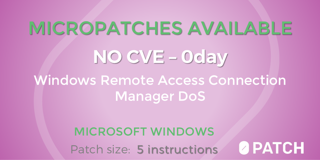Free Micropatches for Windows Remote Access Connection Manager DoS (0day)