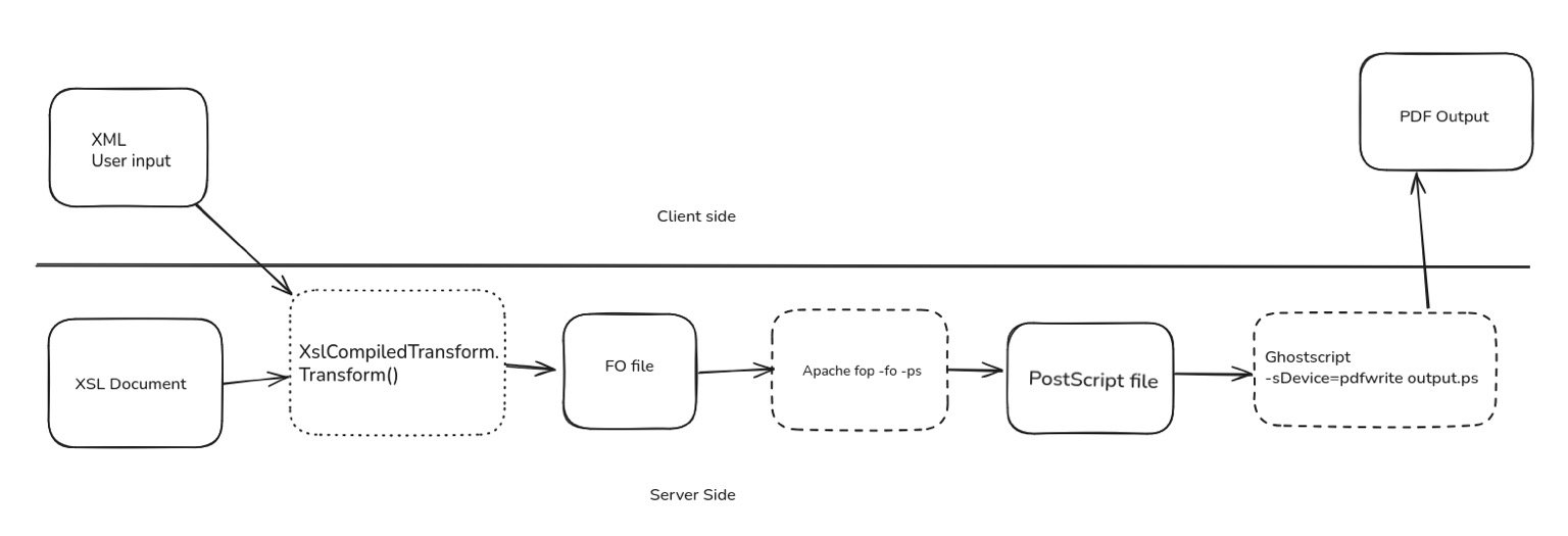 Team member @sigabrt was able to bypass Apache FOP Postscript escaping to reach GhostScript engine.