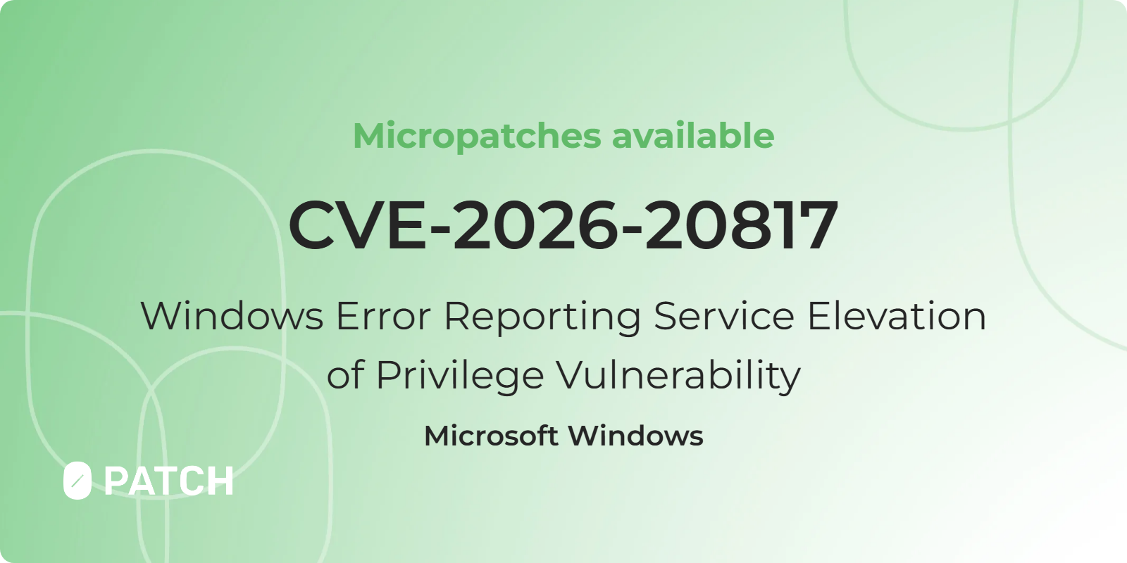 Micropatches released for Windows Error Reporting Service Elevation of Privilege Vulnerability (CVE-2026-20817)
