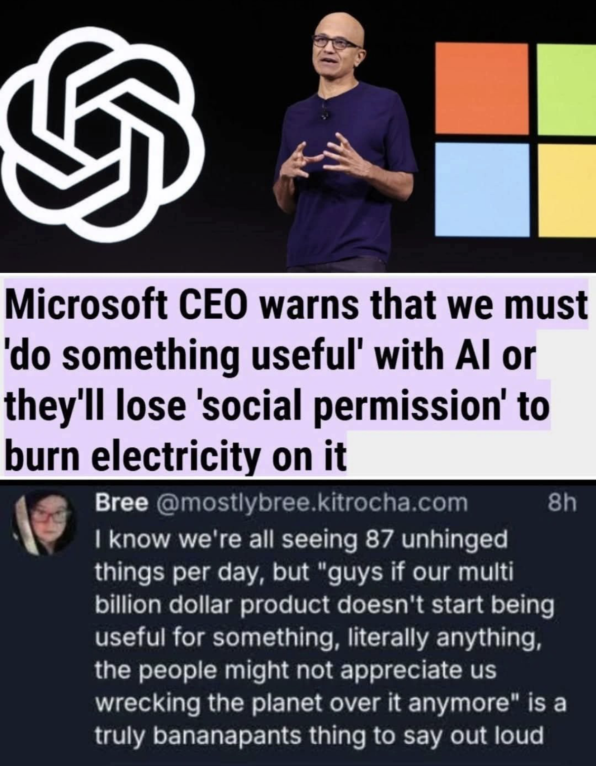 This _seems_ bananas, but you have to appreciate Microsoft's central role in computing as a _consumer of excess capacity_ that only incidentally _produces_ useful outputs. That is to say, the classic cycle of the computing _economy_ has been chipmakers, mostly Intel, builds faster machines, and then Windows and Office grow to soak up that excess capacity, driving demand for yet faster hardware. But... there's a plausible need in that cycle for Windows, Word, etc.