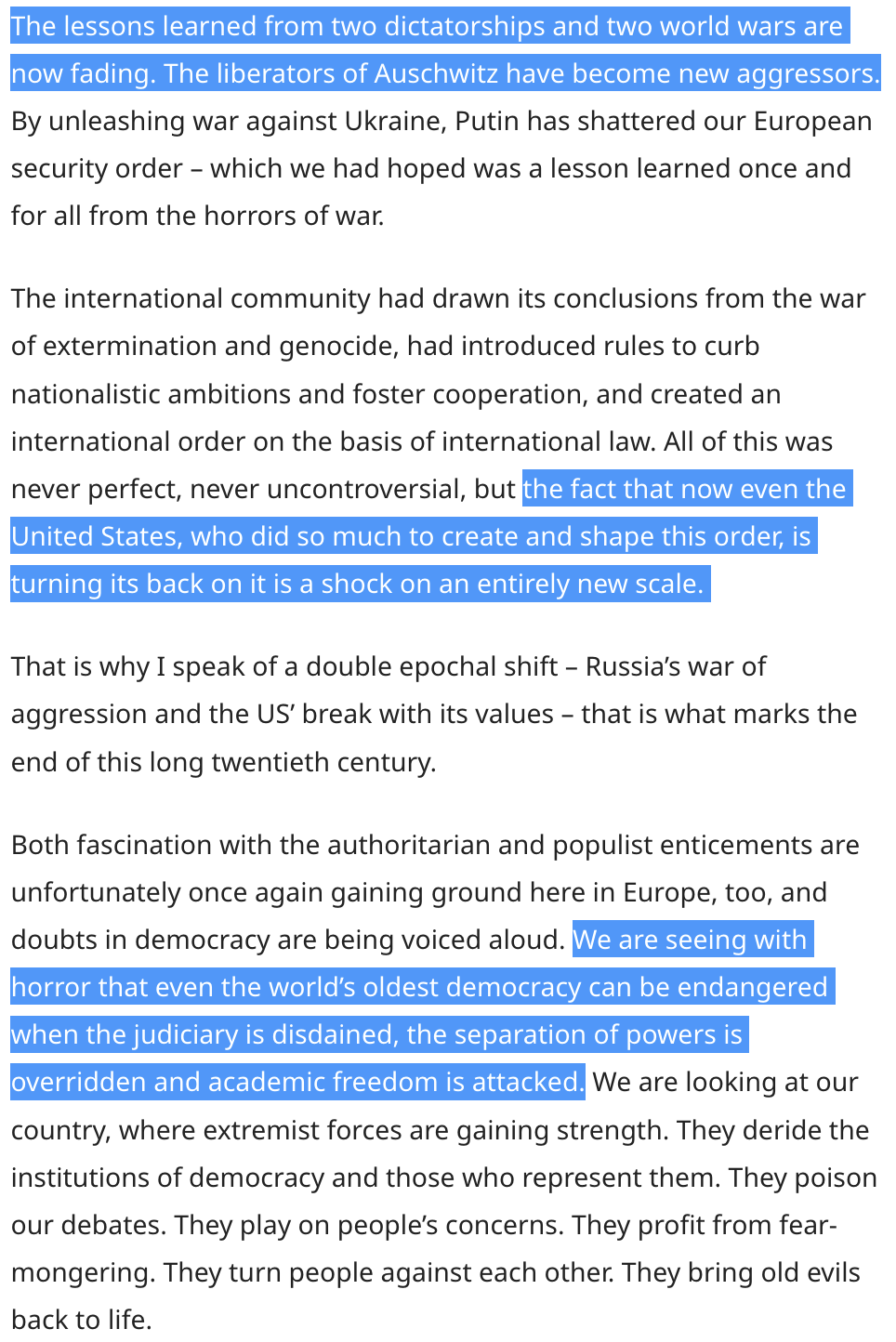 German President Steinmeier's speech commemorating the 80th anniversary of the end of World War II: