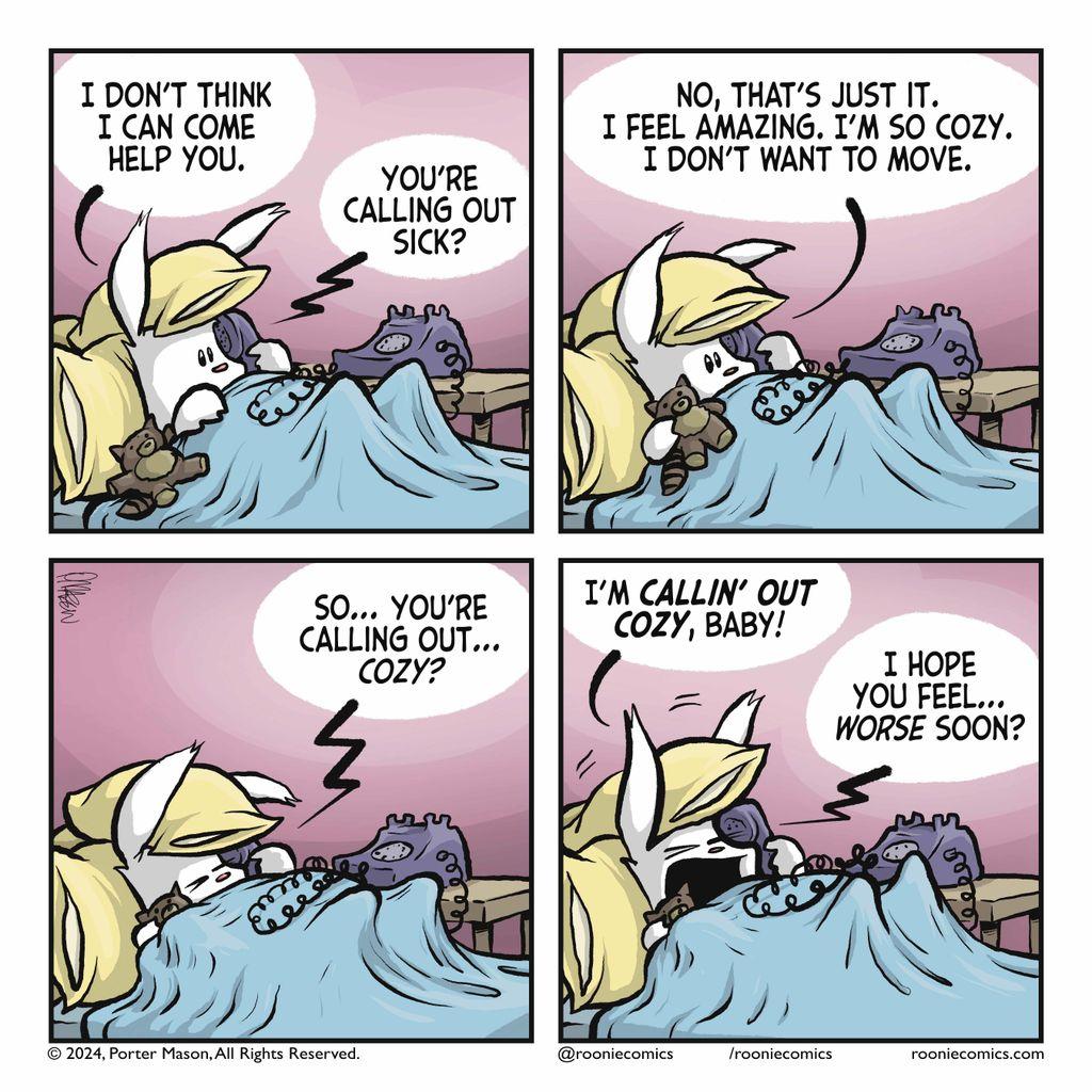 I wish my work would accept this reason. | More comics: https://rooniecomics.com/comics/cozy